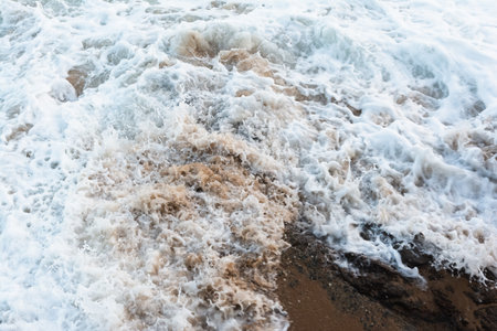 beautiful closeup shot of the foamy ocean water reaching the shore