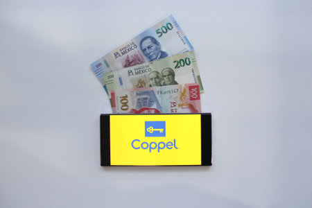 Mexico City, Mexico - Feb 22, 2025: Coppel offers a mobile app and a laptop website for online shopping for financial products and services, one of the largest retail chains