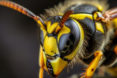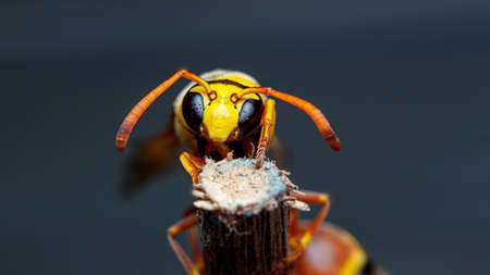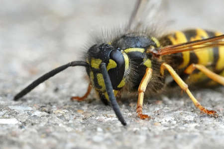 Portrait of dangerous and poisonous Vespula germanica wasp