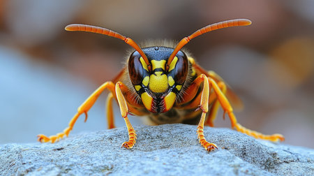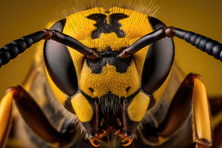 Macro of the head of a hornet vespula vulgaris, Close-up of a Wasp Vespula vulgaris, AI Generated