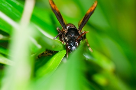 Close-up of a red Oriental hornet (Vespa orientalis)