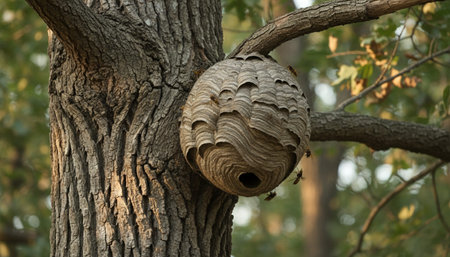 A young Paper Wasp Queen builds a nest to start a new colony.