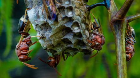 Wasp's Nest New Life. Selective Focus. Paper wasps are active in their nests