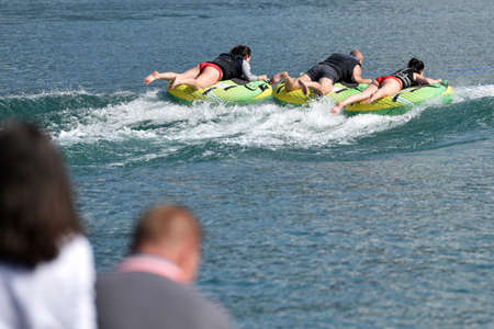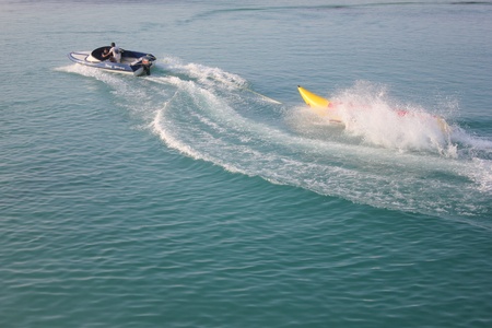 Tourists enjoying ride a banana boat