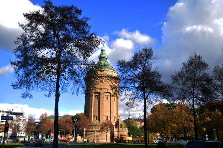 German people and foreign travelers walking travel visit Mannheimer Wasserturm Water tower gardens in Friedrichsplatz square public park at Mannheim city November 8, 2016 in Baden Wurttemberg, Germany