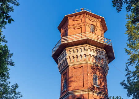 Old brick water tower in Gizycko, Poland.