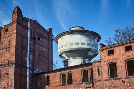 Ruins of brick buildings in an abandoned factory in Poznan