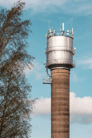 Tall water tower with 4G communication antennas