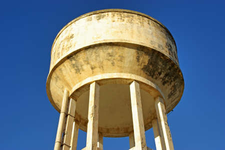 Big emergency water tank elevated over a mortar structure