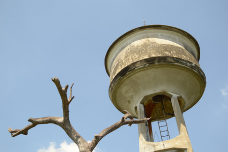 Water tower and the blue sky on the background