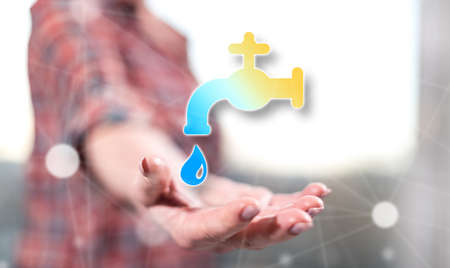 Water concept in everyday life. Hands supporting the water flowing from the faucet. water splashing from the tap