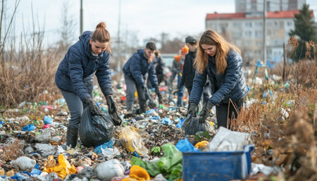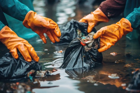 Volunteers are working together to conserve the planet by collecting waste in streams, Generative AI