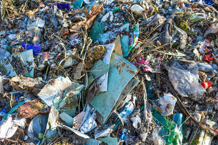 Pollution concept. Garbage pile in trash dump or landfill. Garbage dump, various trash and waste material, environmental pollution and ecology concept, selective focus
