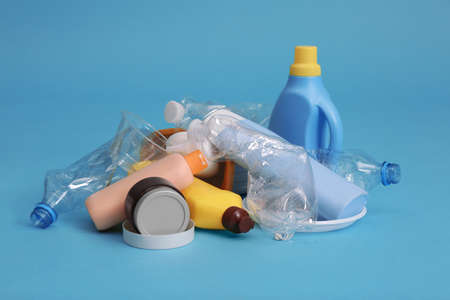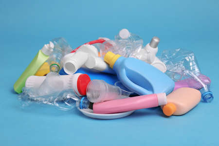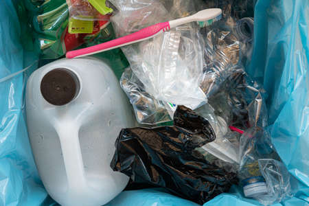Pile of sorted plastic waste, prepared for recycling. Waste disposal, collection, separation, management, treatment, reuse, recycle and recovery concept.