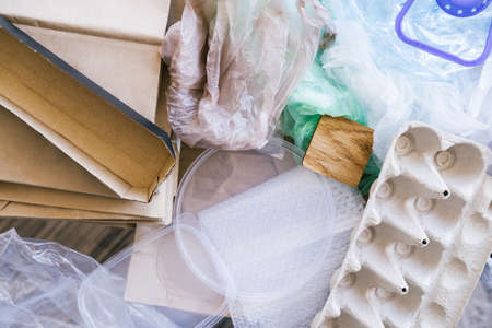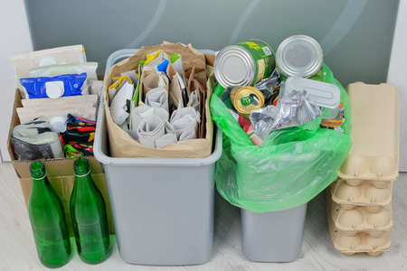 Recyclable garbage: glass, plastic, paper, cardboard, metal prepared for recycling. Waste to be recycled. Trash for recycle and reduce ecology environment.