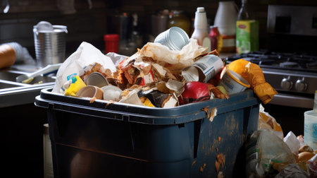 close-up of overflowing dumpster with mixed waste, created with generative ai