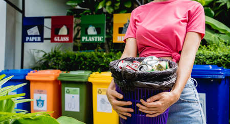 Different types of waste are sorted for recycling. Sorting household garbage - paper, metal, plastic into bags. Environmentally responsible behavior concept Vietnam, Nha Trang: 2020-12-14