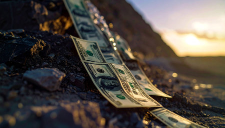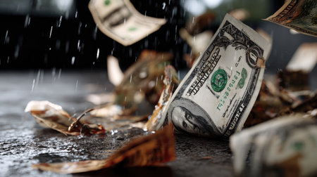 An artistic representation of dollar bills falling and getting soaked, creating a compelling narrative on the value and impact of money in our lives.
