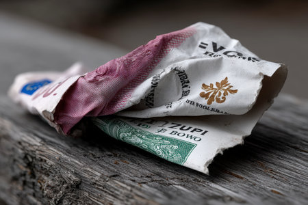 Shredded currency represents the disintegration of an economic model, illustrating chaos in financial stability. The chaotic scene evokes concern for economic decline.