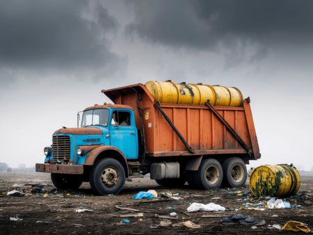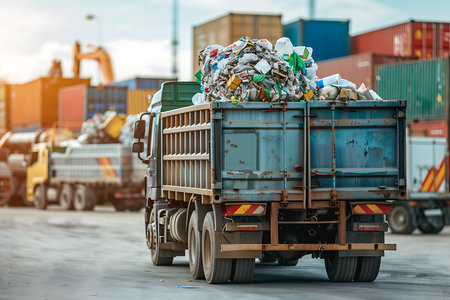 freight truck collecting industrial overflowing garbage from enterprises, created with generative ai