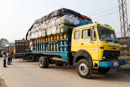 Burimari, Bangladesh, March 3 2017: Trucks in Burimari, a border town between Bangladesh and India are waiting for clearance