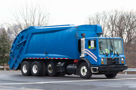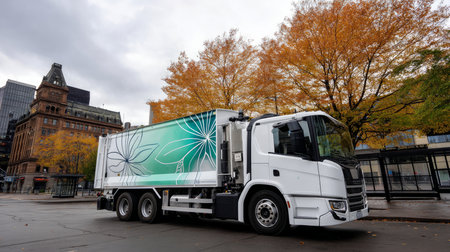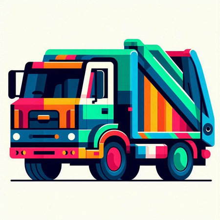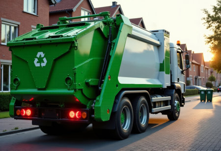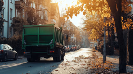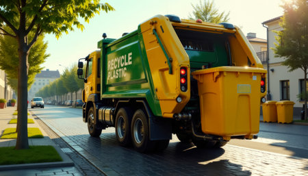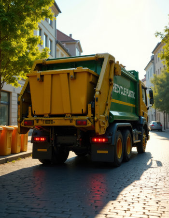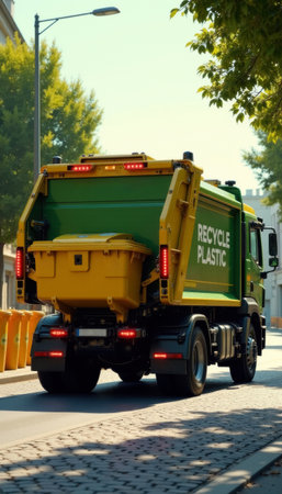 Garbage truck is transporting separated recyclable materials in a city, promoting environmental sustainability and waste responsible management