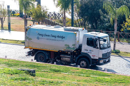 Antalya, Turkey - November 15, 2021: sweeper on the city embankment