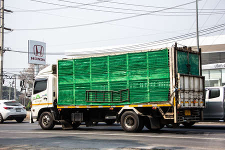 Chiangmai, Thailand - March 2 2021: Pig Animal cage container truck of Betagro Company. On road no.1001, 8 km from Chiangmai Business Area.
