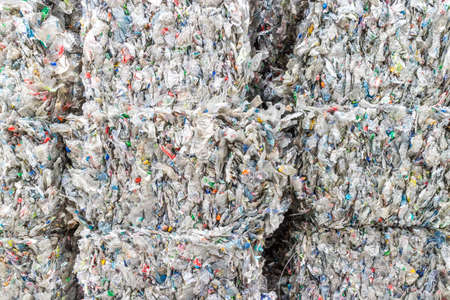 Pressed debris, bags from the product, polyethylene, garbage compacting, pressed. selective focus