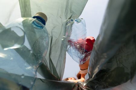 Number 1 PET plastic bottle collected for recycling. Empty used water bottles for recycle. Sorting of household waste. Zero waste