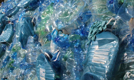 blurred waste garbage plastic bottle background, plastic waste texture blur