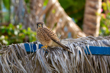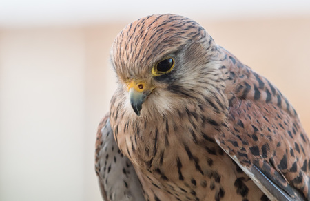 Closeup shot of a Common Kestrel, an endangered bird of prey which lives on high buildings and bell towers