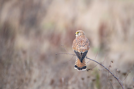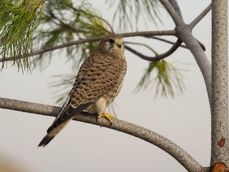 Common kestrel sitting on a tree branch, Falco tinnunculus wildlife, raptor bird of prey, wildlife habitat