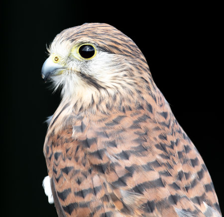 Beautiful portrait of Kestrel Falco Tinnunculus in studio setting on black background