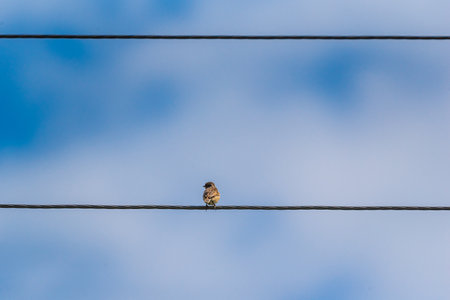 Adorable young sparrow on a vibrant turquoise background for artistic nature themes