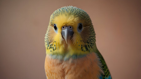 A stunning close-up shot of a vibrant budgie, showcasing its intricate feathers and captivating gaze.