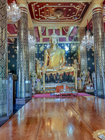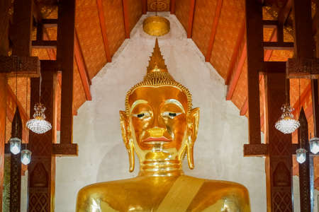 Phitsanulok, Thailand - August 18 2020 Phra jao ton luang or Gold buddha statue at Wat si khom kham, Phayao, Thailand . Beautiful of historic city at Buddhism temple.