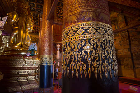 Thai style golden pattern showing texture on a pole in main hall in Phumin Temple, Nan, Thailand