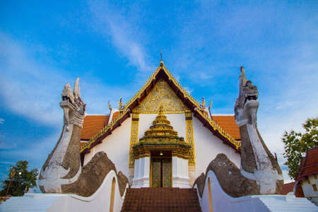 Wat Phumin, Muang District, Nan Province, Thailand. public place, the most famous temple with blue sky in morning