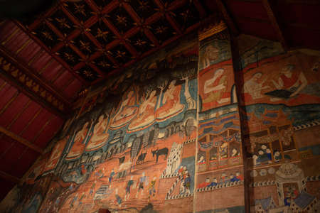 The Frescoes Depicting Ancient Cultures are Beside The Window in The Church in Nan Province in The North of Thailand