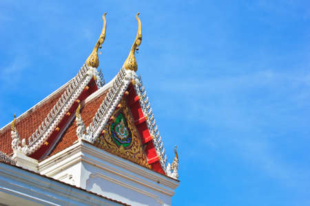 Gabled roof temple and blue sky in thailand
