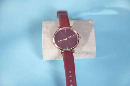 woman fashion watch on the blue background