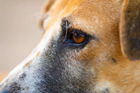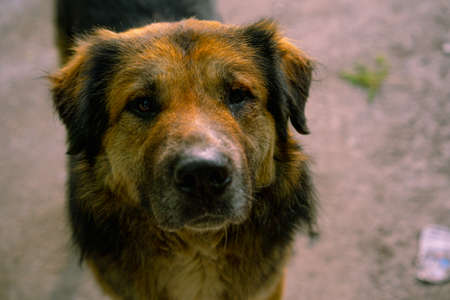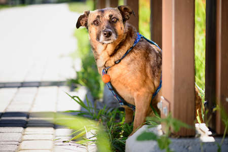 Portrait of a beautiful mixed breed dog in the park. Selective focus.