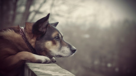 A sorrowful dog gazes at its reflection in a puddle, mirroring its sadness.