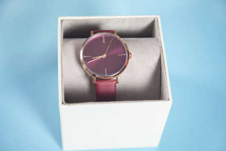 watch on the white box on blue background