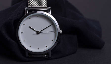 Elegant wrist watch closeup on dark