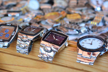 Different vintage watches on flea market in Moscow