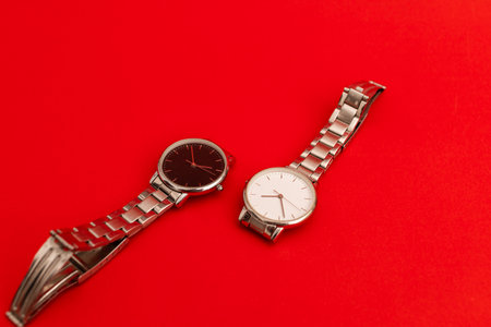 Silver watch on a bright red background