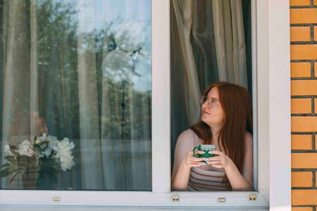 glimpse in future of home maintenance, robots take over task of keeping our views crystal clear, while girl is drinking tea
