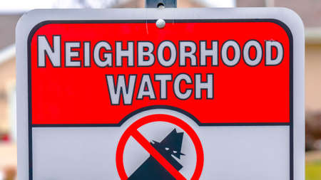 Panorama frame Close up of a Neighborhood Watch sign against a blurred background